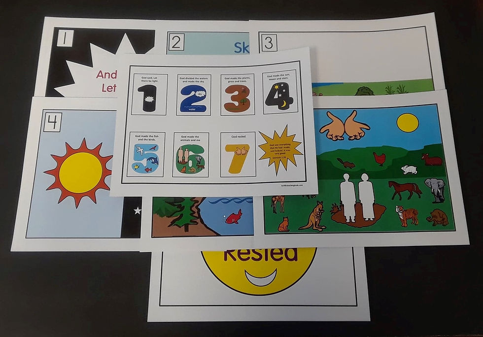 Teaching the Story of Creation is always exciting. Our very detailed and colorful flashcards make it even more so. Each flashcard is numbered so children can learn each day of creation. Our flashcards are also great for review. Size 8 1/2 X 11